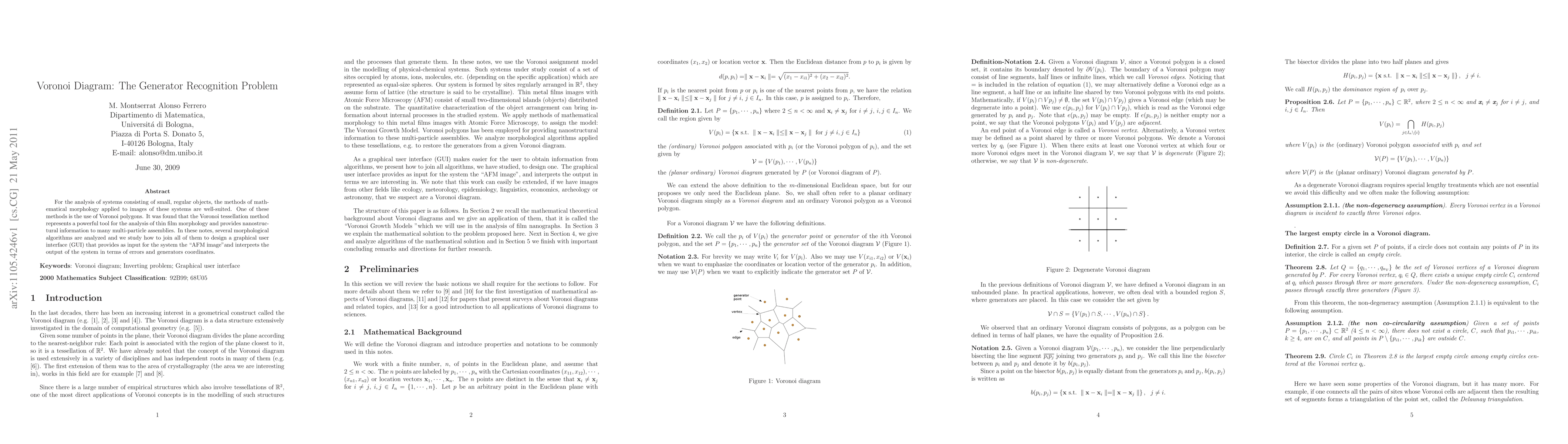 This research paper explores the application of Voronoi diagrams to analyze systems of small, regular objects, providing valuable nanostructural information. It aims to develop a graphical user interface for interpreting AFM images and analyzing system outputs in terms of errors and generator coordinates.