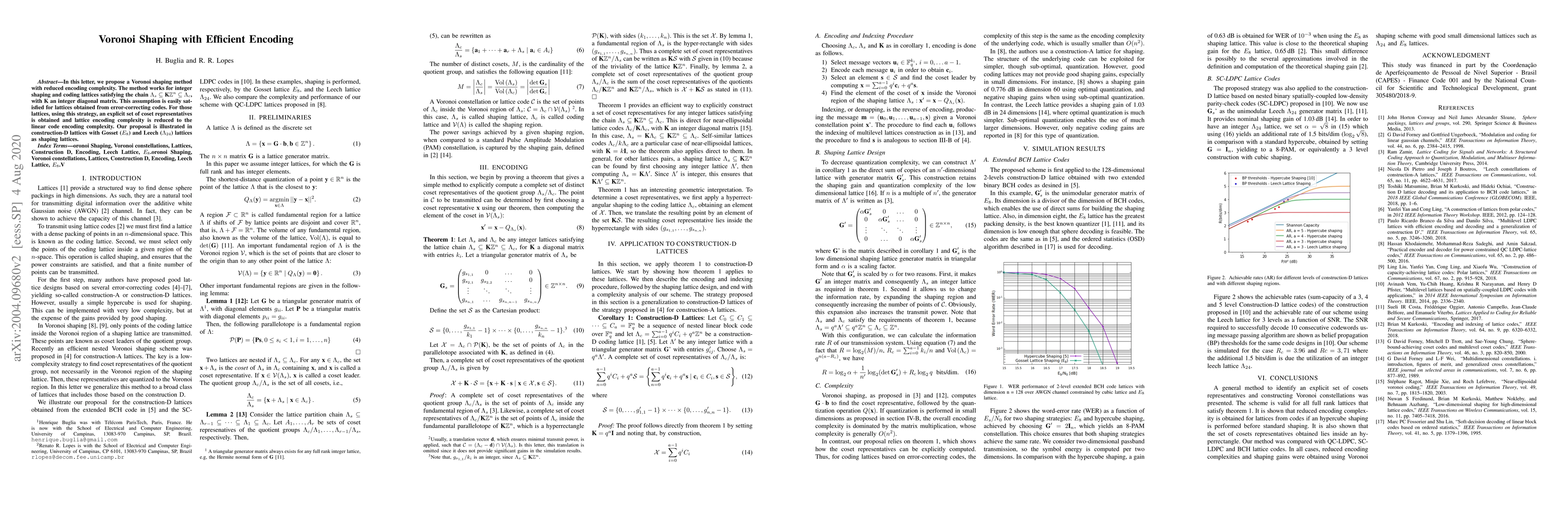 This paper introduces a Voronoi shaping method that simplifies encoding complexity for lattices fitting a specific chain structure, reducing lattice encoding to linear code encoding complexity. The method is demonstrated using construction-D lattices with Gosset ($E_8$) and Leech ($\Lambda_{24}$) lattices.