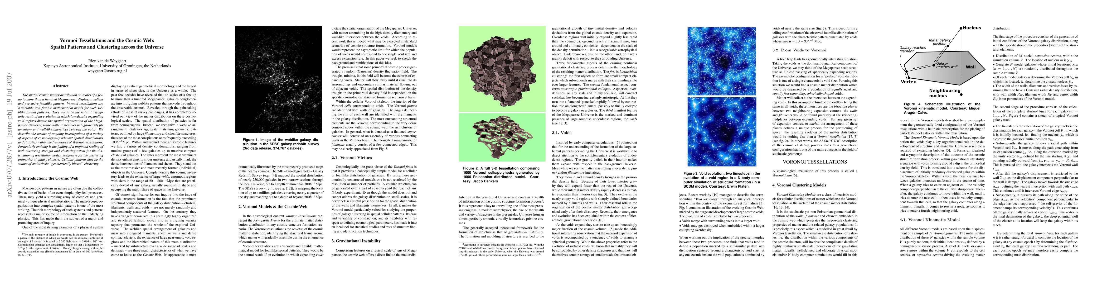 This paper explores the cosmic web's spatial patterns using Voronoi tessellations, revealing a foamlike distribution of matter across Megaparsec scales. It finds significant scaling in clustering strength and extent, suggesting a geometrically biased clustering akin to galaxy clusters.