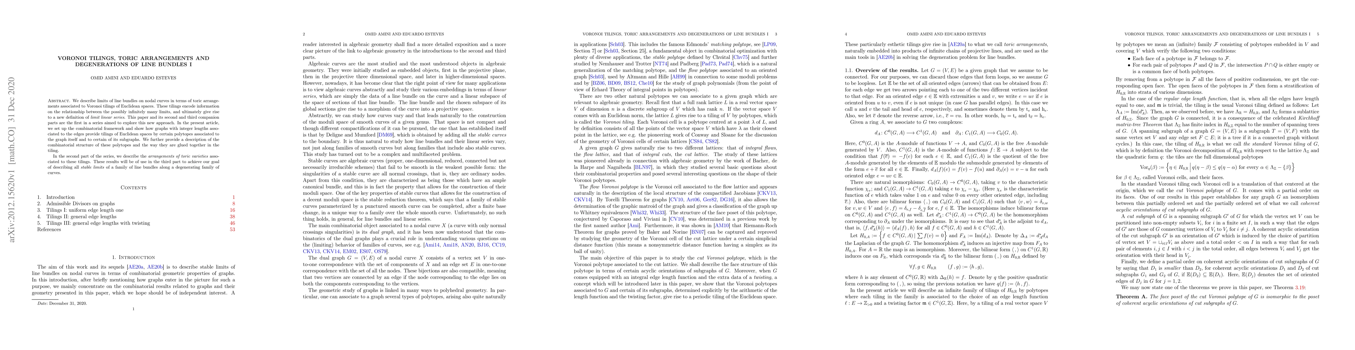 This paper establishes a combinatorial framework using Voronoi tilings and toric arrangements to describe limits of line bundles on nodal curves. It introduces polytopes associated with graphs and their subgraphs, providing a new definition of limit linear series.