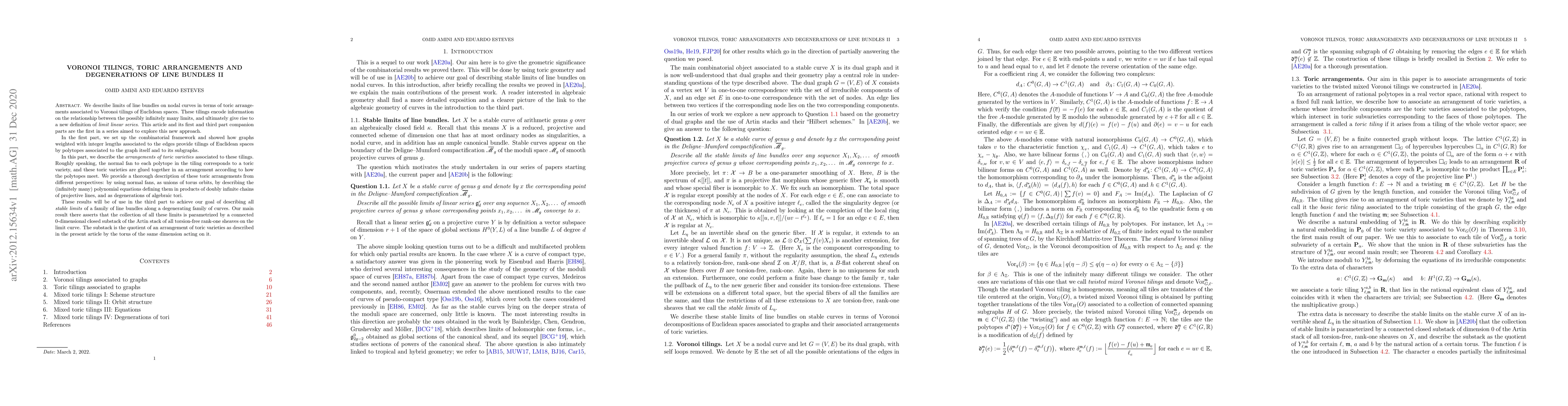 This paper explores the limits of line bundles on nodal curves through toric arrangements linked to Voronoi tilings of Euclidean spaces, providing a new definition of limit linear series. It details the combinatorial framework and describes the toric arrangements associated with the tilings, offering multiple perspectives on these arrangements.