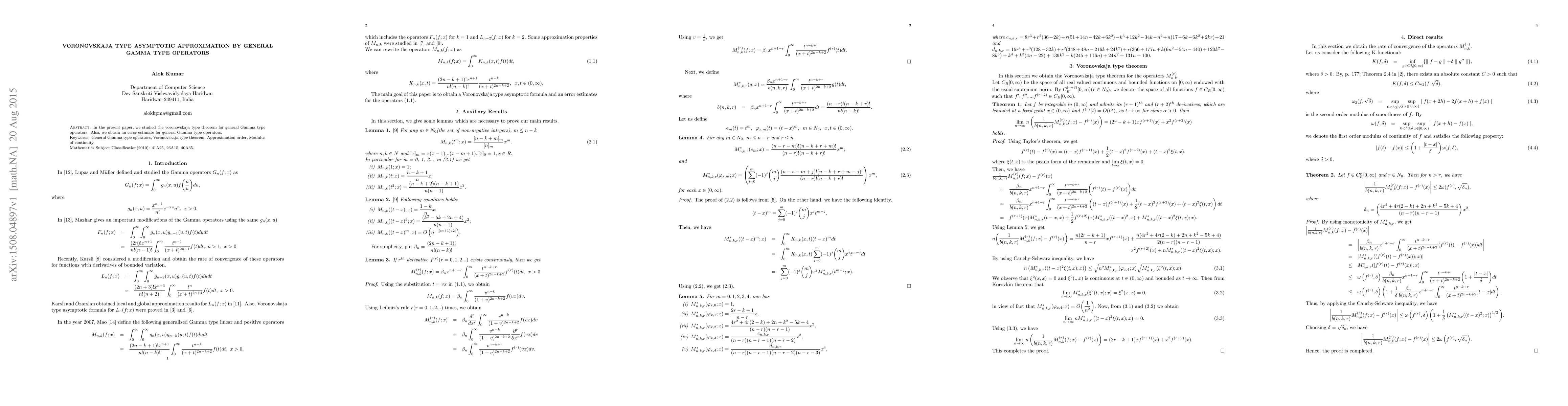 In the present paper, we studied the voronovskaja type theorem for general Gamma type operators. Also, we obtain an error estimate for general Gamma type operators.