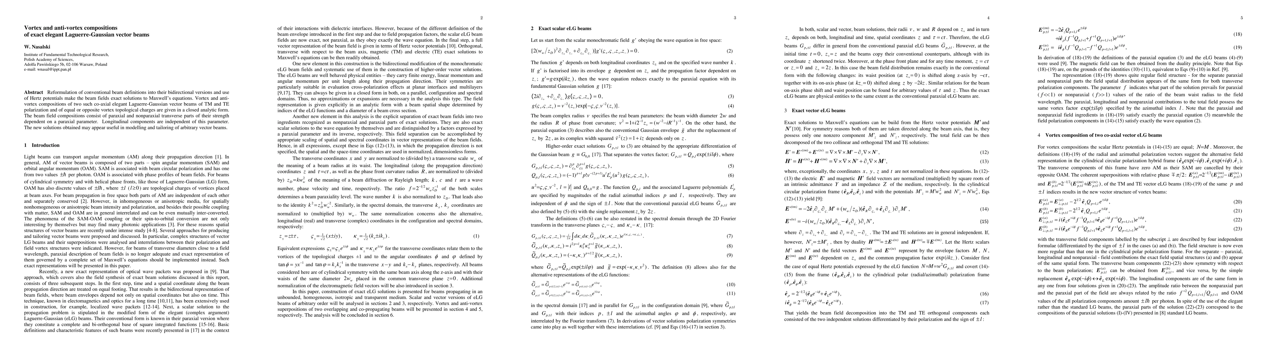 Reformulation of conventional beam definitions into their bidirectional versions and use of Hertz potentials make beam fields exact vector solutions to Maxwell's equations. This procedure is applied to higher-order elegant Laguerre-Gaussian beams of TM and TE polarization. Their vortex and anti-vortex co-axial compositions of equal and opposite topological charges are given in a closed analytic form. Polarization components of the composed beams are specified by their radial and azimuthal indices. The longitudinal components are common for beam compositions of both types, meanwhile their transverse components are different and comprise two - nonparaxial and paraxial - separate parts distinguished by a paraxial parameter and its inverse, respectively. The new solutions may appear useful in modelling and tailoring of arbitrary vector beams.