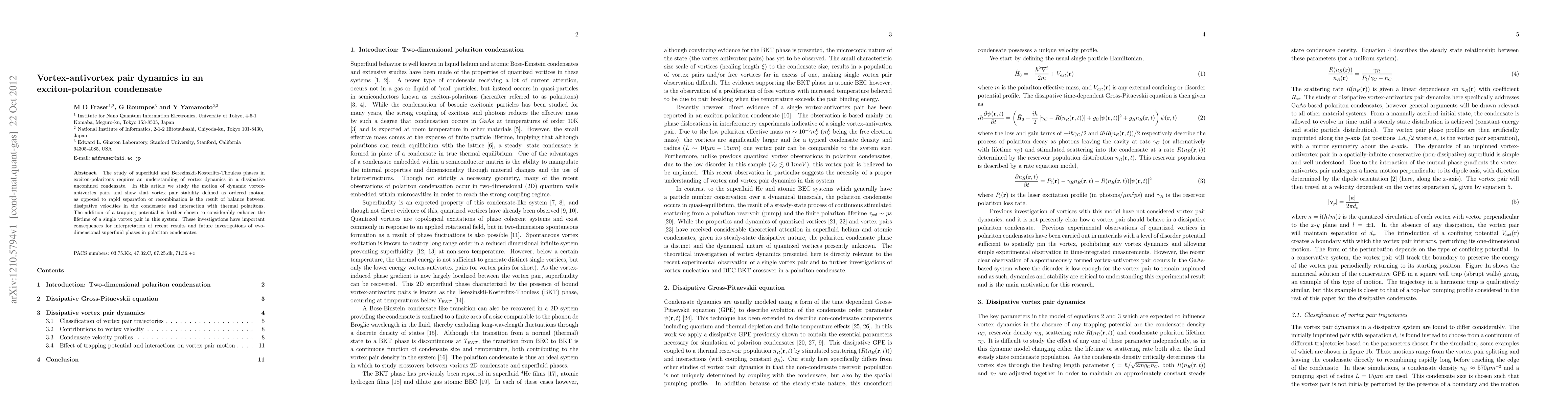 This paper investigates the dynamics of vortex-antivortex pairs in exciton-polariton condensates, demonstrating that their stability is due to a balance between dissipative velocities and thermal interactions. The introduction of a trapping potential significantly increases the lifetime of these pairs, which has implications for understanding superfluid and Berezinskii-Kosterlitz-Thouless phases in polariton systems.