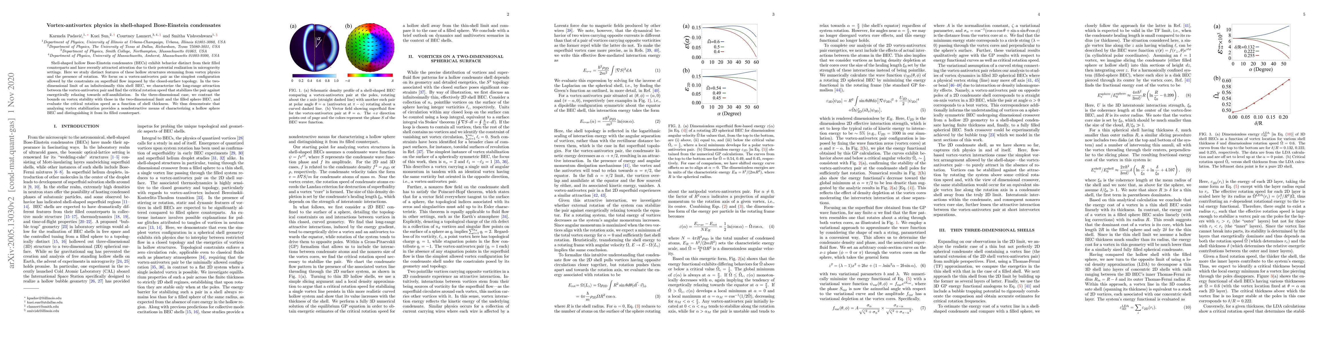 This paper explores the vortex-antivortex dynamics in shell-shaped Bose-Einstein condensates, revealing how rotation influences vortex stability. It identifies the critical rotation speed that stabilizes vortex pairs in both two-dimensional and three-dimensional configurations, providing a method to distinguish hollow sphere BECs from filled ones.