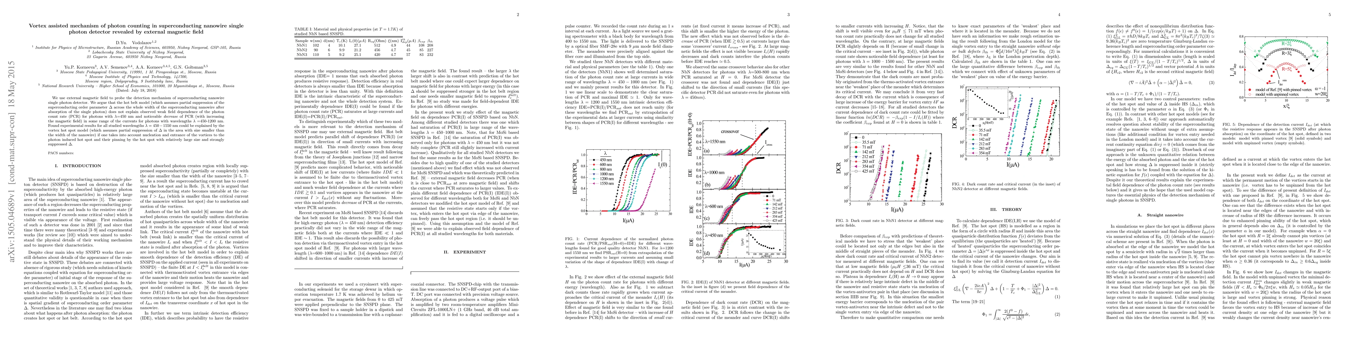 This paper explores the detection mechanism in superconducting nanowire single photon detectors using an external magnetic field. It finds that the vortex hot spot model, involving localized vortices and their pinning in photon-induced hot spots, better explains experimental observations than the hot belt model, especially for photon wavelengths ranging from 450 to 1550 nm.