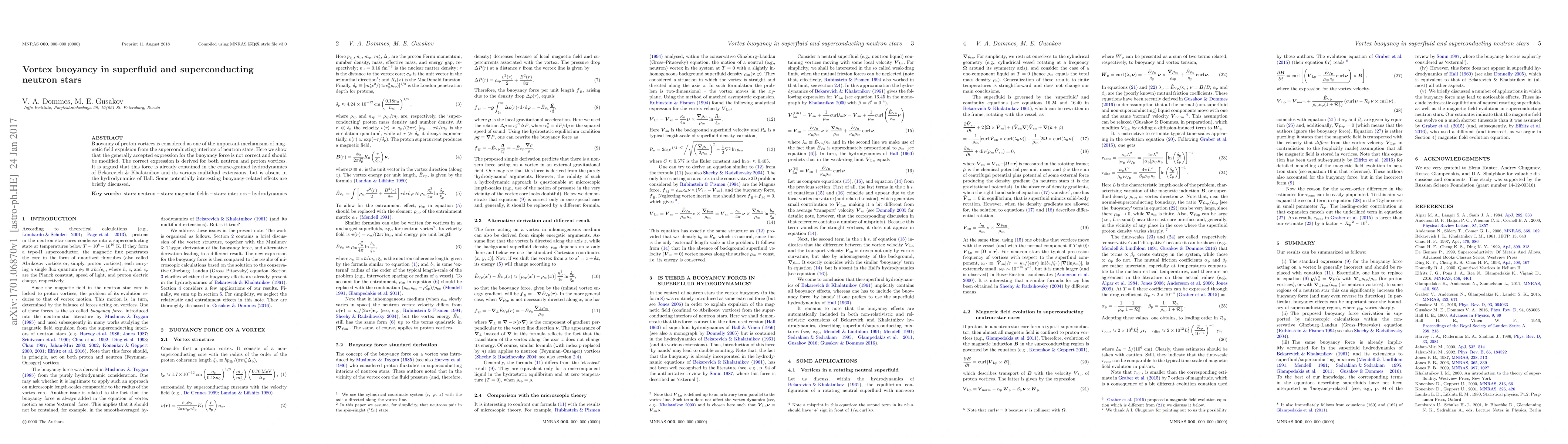 Buoyancy of proton vortices is considered as one of the important mechanisms of magnetic field expulsion from the superconducting interiors of neutron stars. Here we show that the generally accepted expression for the buoyancy force is not correct and should be modified. The correct expression is derived for both neutron and proton vortices. It is argued that this force is already contained in the coarse-grained hydrodynamics of Bekarevich & Khalatnikov and its various multifluid extensions, but is absent in the hydrodynamics of Hall. Some potentially interesting buoyancy-related effects are briefly discussed.