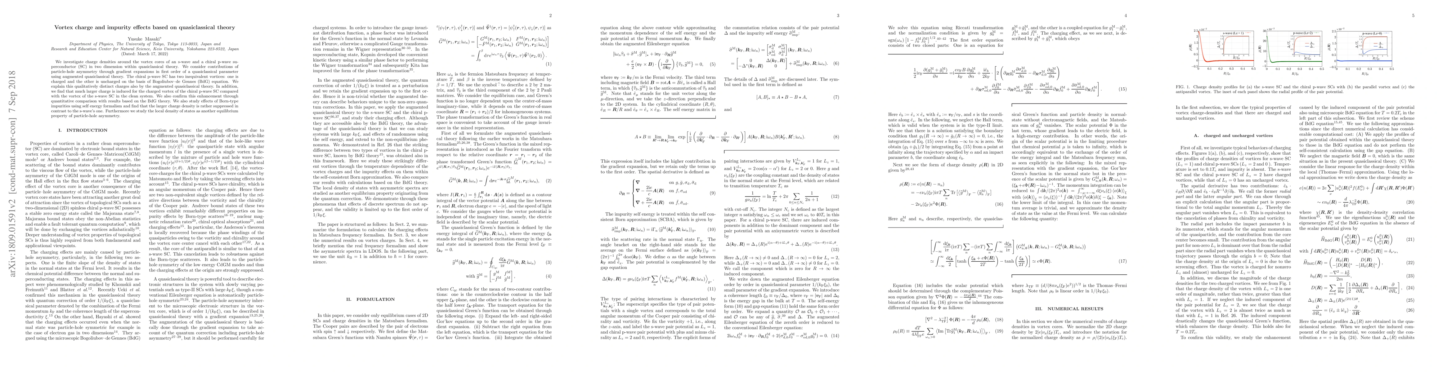 Researchers studied charge densities around vortex cores in two superconductors using quasiclassical theory, finding larger charges in one type of superconductor with impurities.