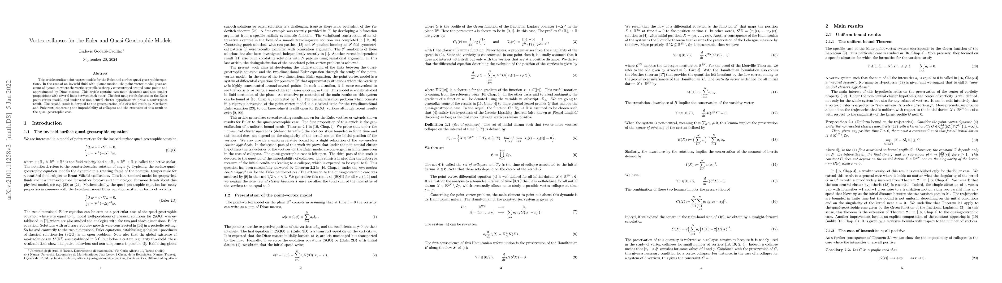 This paper investigates point-vortex models for the Euler and quasi-geostrophic equations, focusing on vortex collapses in inviscid fluids. It establishes uniform bounds on vortex trajectories, proves convergence under the non-neutral cluster hypothesis, and extends the improbability of collapses to the quasi-geostrophic case.