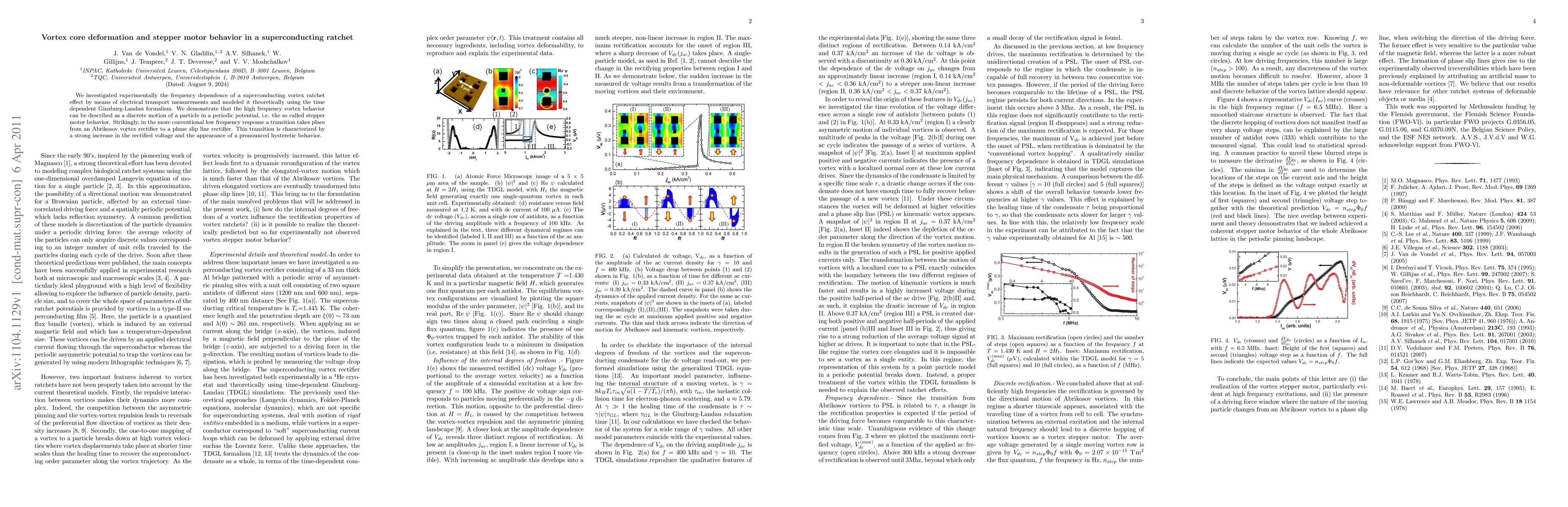 This study investigates the frequency-dependent behavior of a superconducting vortex ratchet, showing that high-frequency vortex motion mimics a stepper motor. At lower frequencies, a transition from an Abrikosov vortex rectifier to a phase slip line rectifier occurs, marked by a significant increase in rectified voltage and hysteretic behavior.