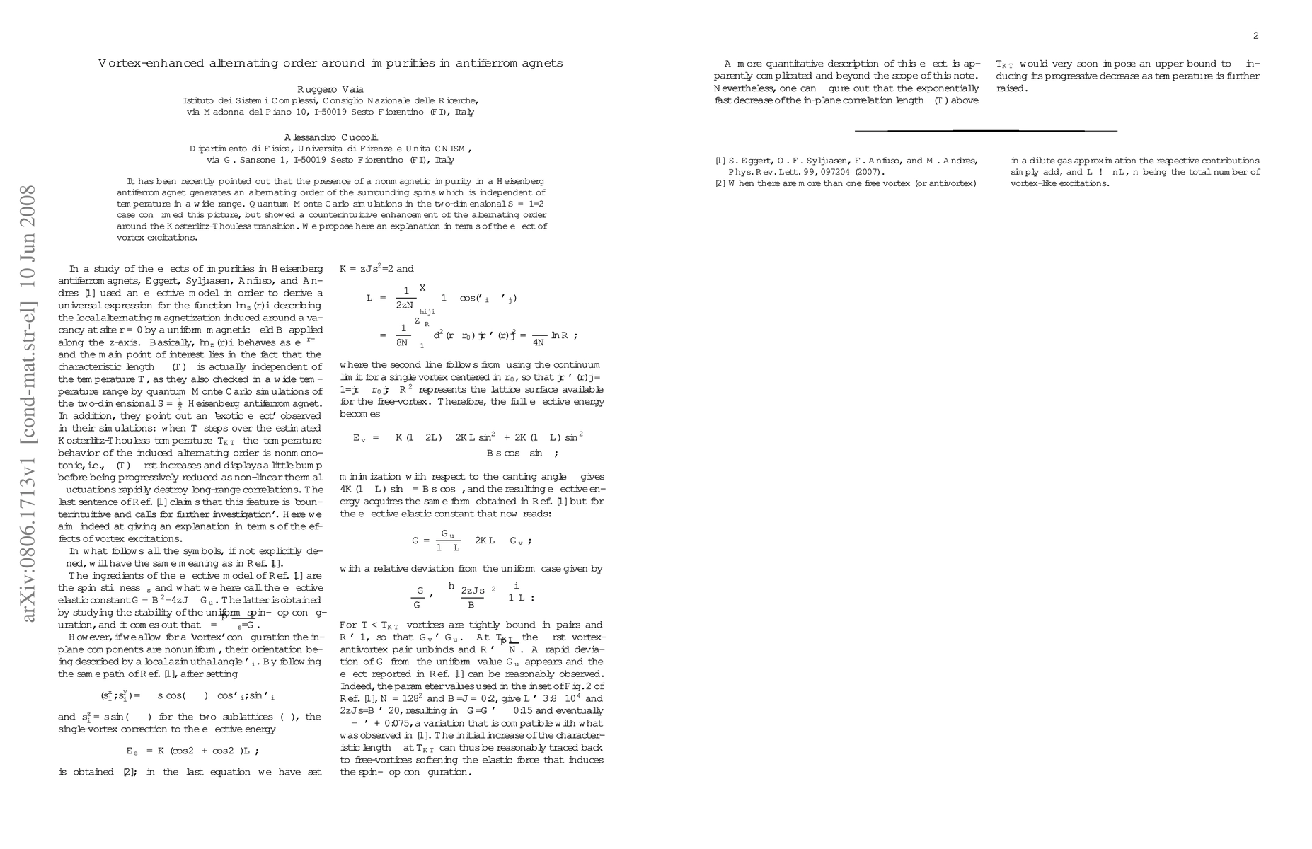It has been recently pointed out that the presence of a nonmagnetic impurity in a Heisenberg antiferromagnet generates an alternating order of the surrounding spins which is independent of temperature in a wide range. Quantum Monte Carlo simulations in the two-dimensional $S=1/2$ case confirmed this picture, but showed a counterintuitive enhancement of the alternating order around the Kosterlitz-Thouless transition. We propose here an explanation in terms of the effect of vortex excitations.