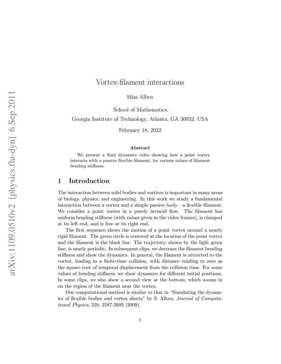 We present a fluid dynamics video showing how a point vortex interacts with a passive flexible filament, for various values of filament bending stiffness.