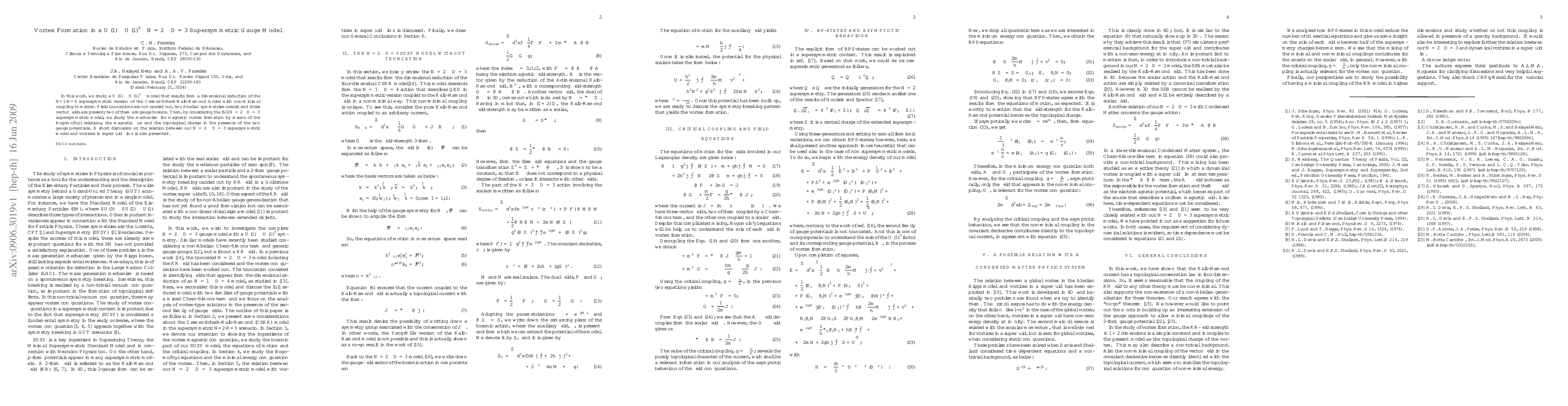 This research investigates a $U(1) \times U(1)'$ supersymmetric gauge model in three dimensions, derived from a dimensional reduction of an N=1, D=4 supersymmetric version of the Cremer-Scherk-Kalb-Ramond model. It focuses on magnetic vortex formation using Bogomol'nyi relations and discusses the connection to vortices in superfluid films.