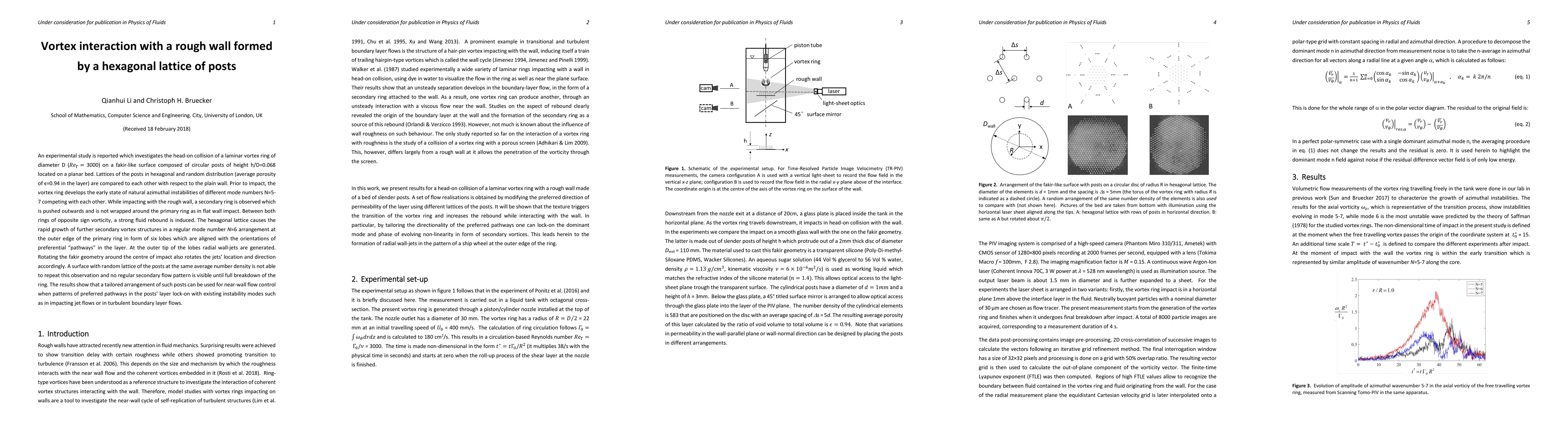 A study found that a specially designed wall with hexagonal posts can control near-wall flows better than a flat wall, creating regular secondary flow patterns that can help manage turbulence.