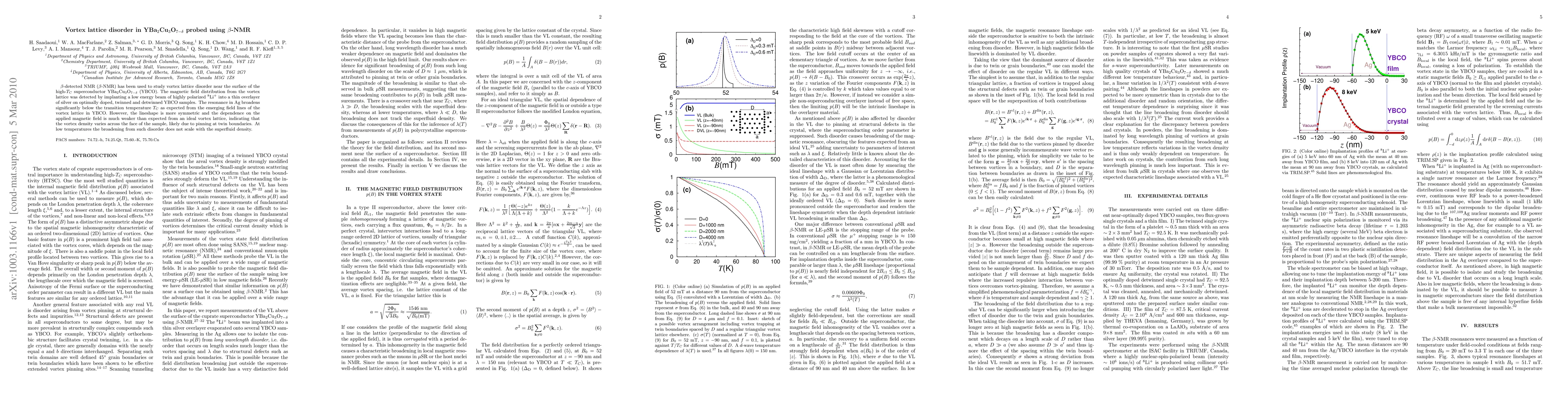 Beta-NMR reveals vortex lattice disorder in YBCO, showing that vortex density varies across the sample face, likely due to pinning at twin boundaries, with the broadening not scaling with superfluid density at low temperatures. The observed magnetic field distribution deviates from ideal vortex lattice expectations.