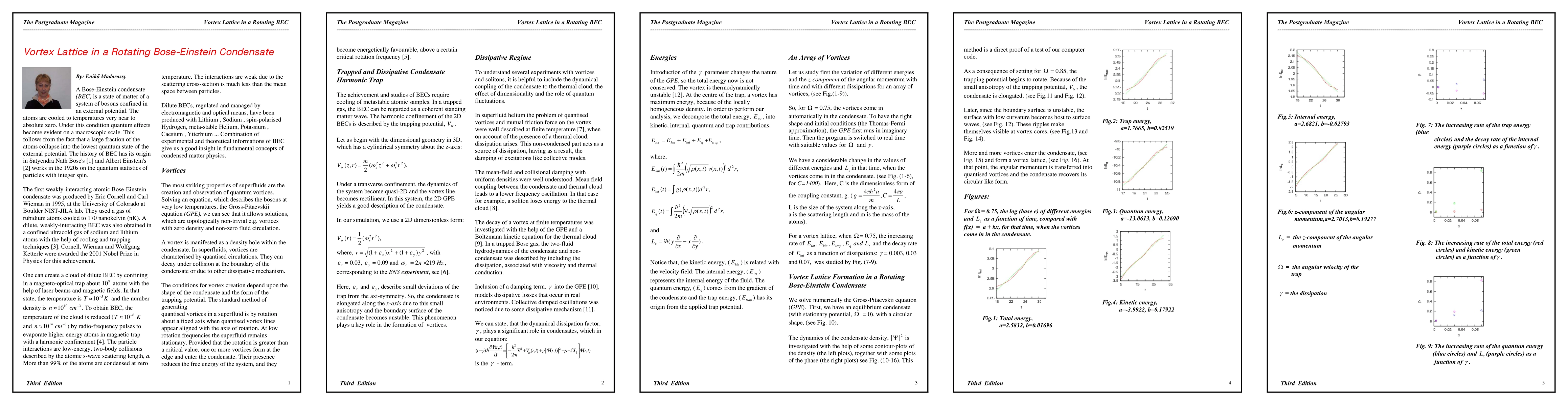 This work is novel because it studies the formation of vortex lattices in rotating Bose-Einstein condensates, which has not been extensively explored before