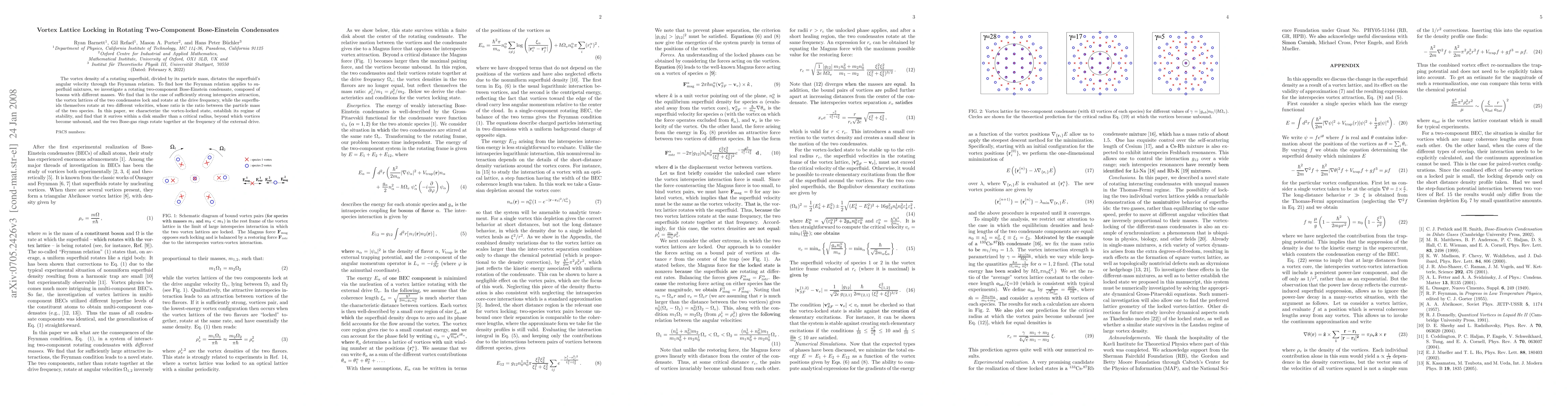 This paper explores the vortex lattice locking in rotating two-component Bose-Einstein condensates, revealing that strong interspecies attraction can cause the vortex lattices to lock and rotate at the drive frequency while the superfluids rotate at different velocities. The study characterizes the stability of this vortex-locked state and identifies the critical radius beyond which the vortices become unbound.