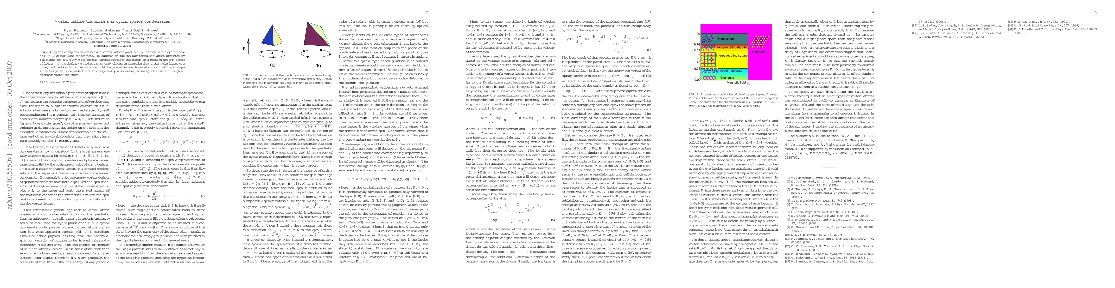 We study the energetics of vortices and vortex lattices produced by rotation in the cyclic phase of F=2 spinor Bose condensates. In addition to the familiar triangular lattice predicted by Tkachenko for $^4$He, many more complex lattices appear in this system as a result of the spin degree of freedom. In particular, we predict a magnetic-field-driven transition from a triangular lattice to a honeycomb lattice. Other transitions and lattice geometries are driven at constant field by changes in the temperature-dependent ratio of charge and spin stiffnesses, including a transition through an aperiodic vortex structure.