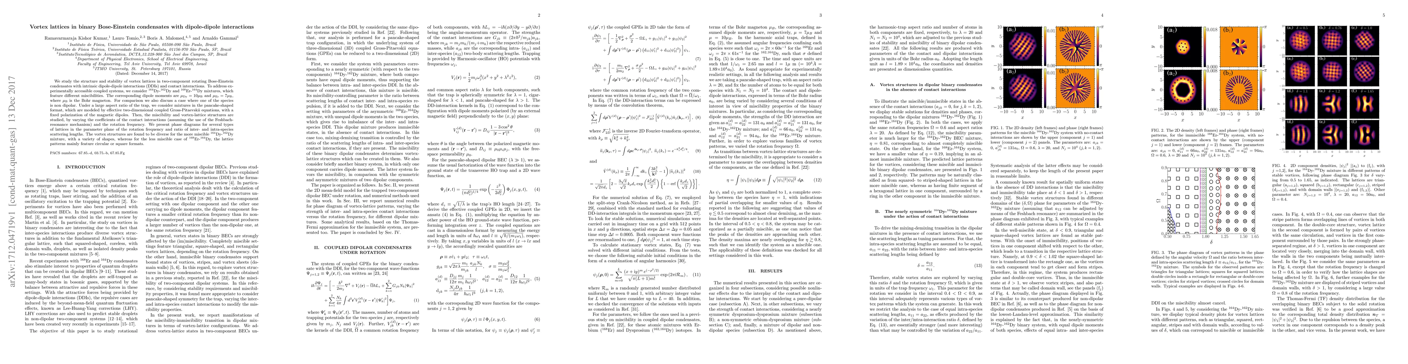 This paper investigates vortex lattice structures in rotating binary Bose-Einstein condensates with dipole-dipole interactions and contact interactions, focusing on experimentally accessible dymium and erbium mixtures. The study reveals diverse vortex shapes in more miscible mixtures, while less miscible mixtures exhibit mainly circular or square patterns.