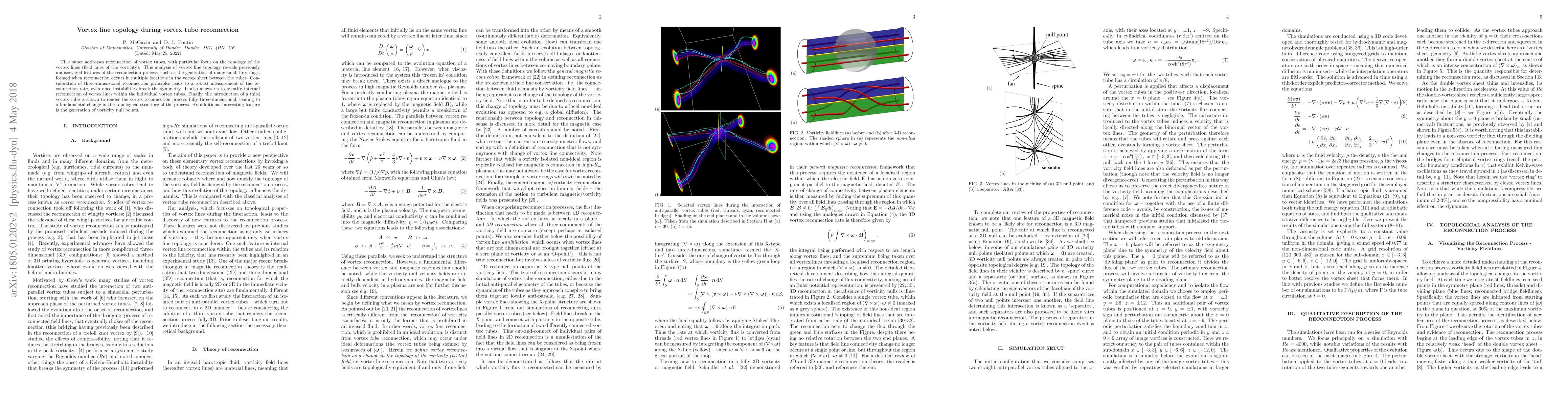 This paper investigates vortex tube reconnection, revealing new topological features such as small flux rings and internal reconnection, and demonstrates how the introduction of a third vortex tube alters the process to a fully three-dimensional structure, including the generation of vorticity null points.