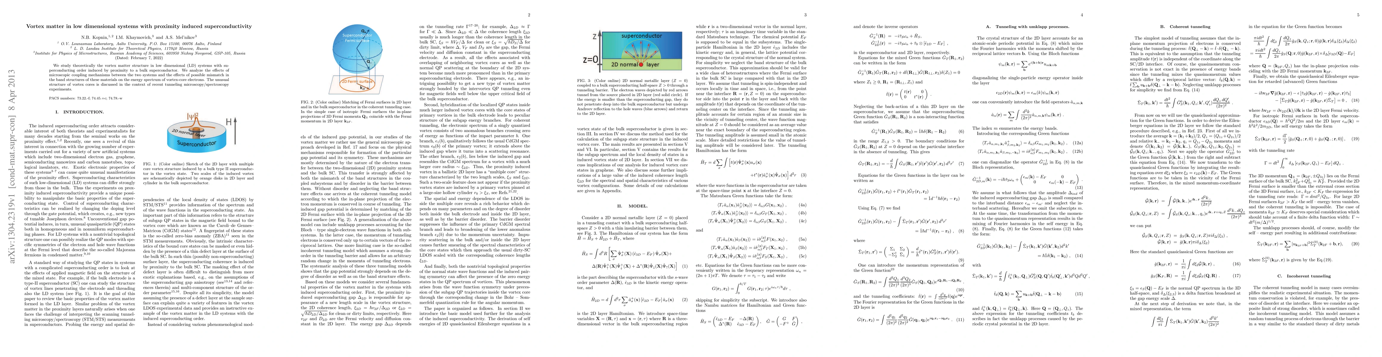 Researchers studied vortex matter in low-dimensional systems with induced superconductivity near a bulk superconductor, analyzing its structure and energy spectrum. They found unusual effects from microscopic coupling mechanisms and band structure mismatches.