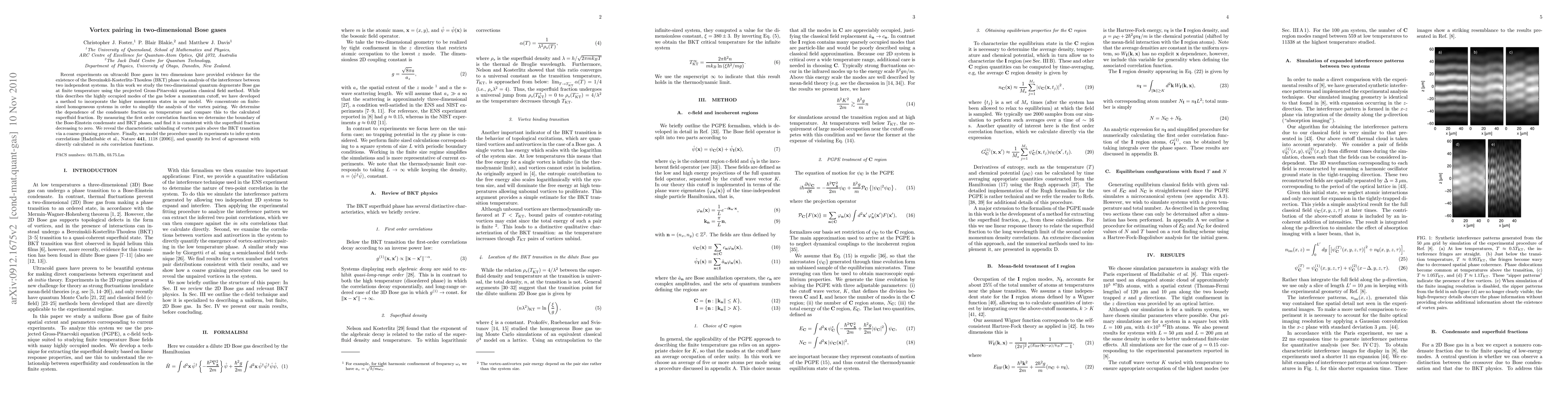 Researchers studied vortex pairing in two-dimensional Bose gases using a computational model, finding that superfluidity decreases to zero above the BKT transition and that the unbinding of vortex pairs occurs via a characteristic process.