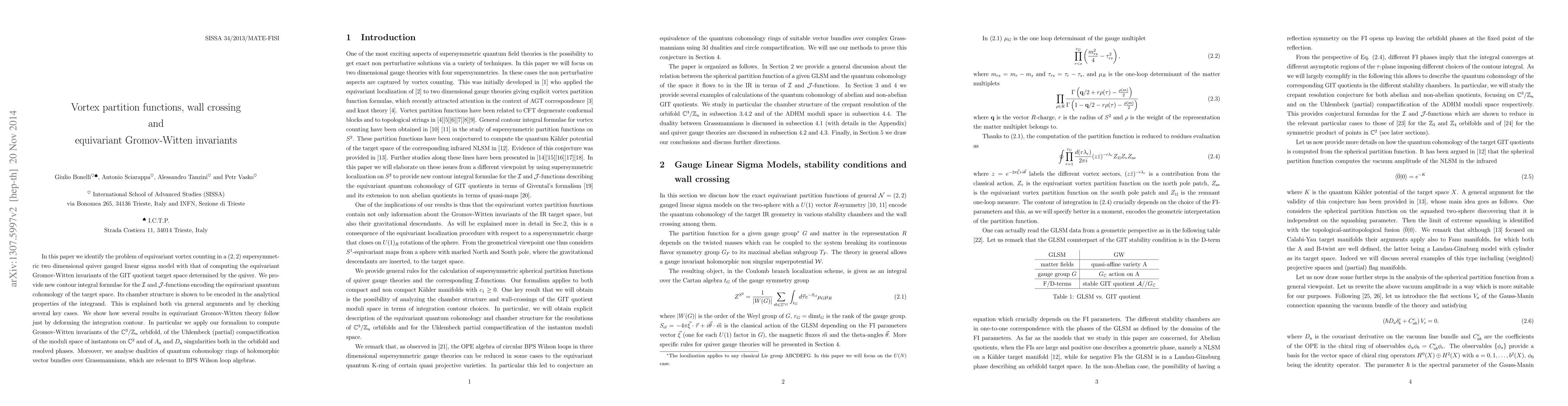 This paper connects equivariant vortex counting in a supersymmetric gauged linear sigma model to the computation of Gromov-Witten invariants of the GIT quotient target space, providing new contour integral formulae for these invariants and demonstrating their chamber structure through analytical properties. It applies this formalism to compute Gromov-Witten invariants for various spaces and analyzes dualities in quantum cohomology rings.