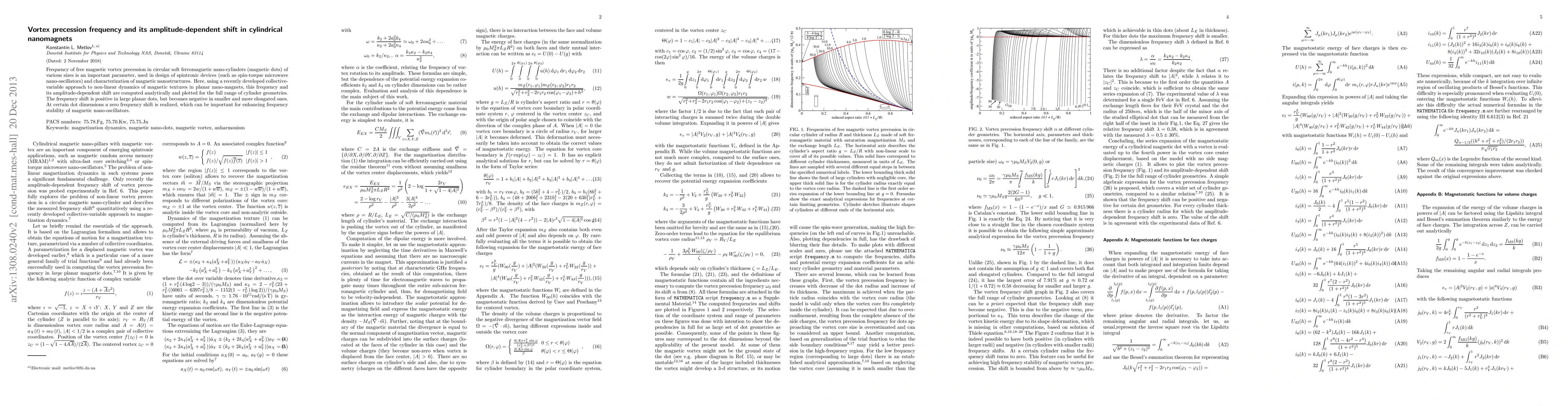 Frequency of free magnetic vortex precession in circular soft ferromagnetic nano-cylinders (magnetic dots) of various sizes is an important parameter, used in design of spintronic devices (such as spin-torque microwave nano-oscillators) and characterization of magnetic nanostructures. Here, using a recently developed collective-variable approach to non-linear dynamics of magnetic textures in planar nano-magnets, this frequency and its amplitude-dependent shift are computed analytically and plotted for the full range of cylinder geometries. The frequency shift is positive in large planar dots, but becomes negative in smaller and more elongated ones. At certain dot dimensions a zero frequency shift is realized, which can be important for enhancing frequency stability of magnetic nano-oscillators.