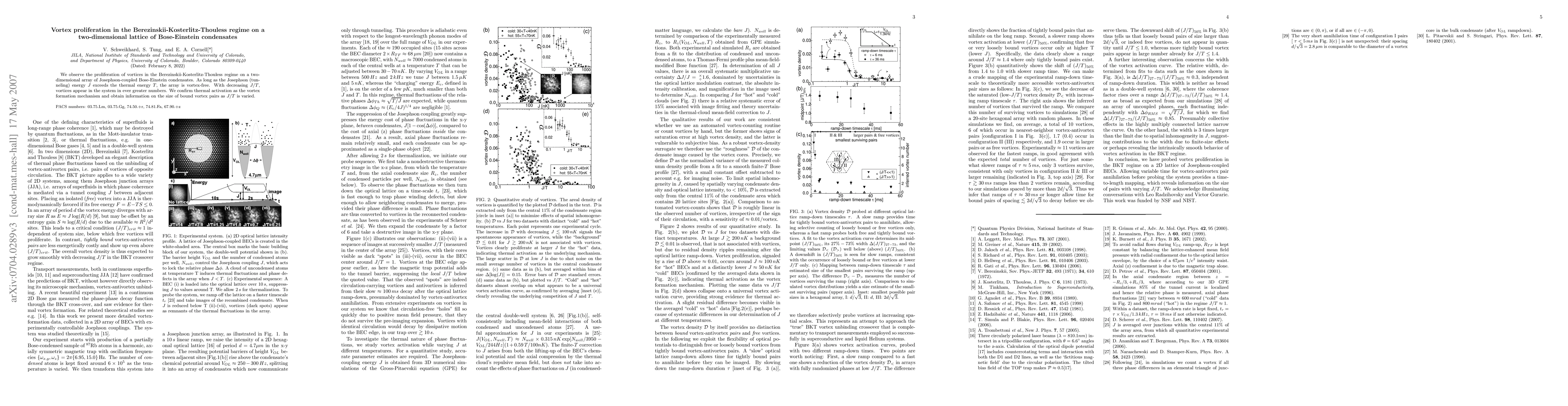 Summary: This study observes the emergence of vortices in a two-dimensional lattice of Bose-Einstein condensates under Berezinskii-Kosterlitz-Thouless conditions, showing that vortex proliferation increases as the ratio of Josephson energy to thermal energy decreases. The research confirms thermal activation as the mechanism for vortex formation and measures the size of vortex pairs.