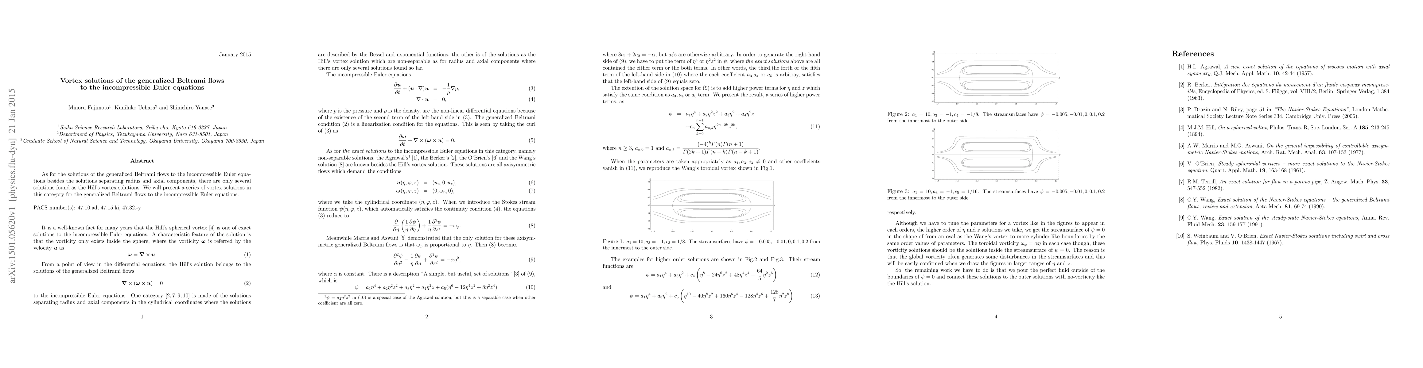This paper presents a series of new vortex solutions for the generalized Beltrami flows in the context of the incompressible Euler equations, expanding beyond the known Hill's vortex solutions. These findings contribute to the understanding of the separation of radius and axial components in such flows.