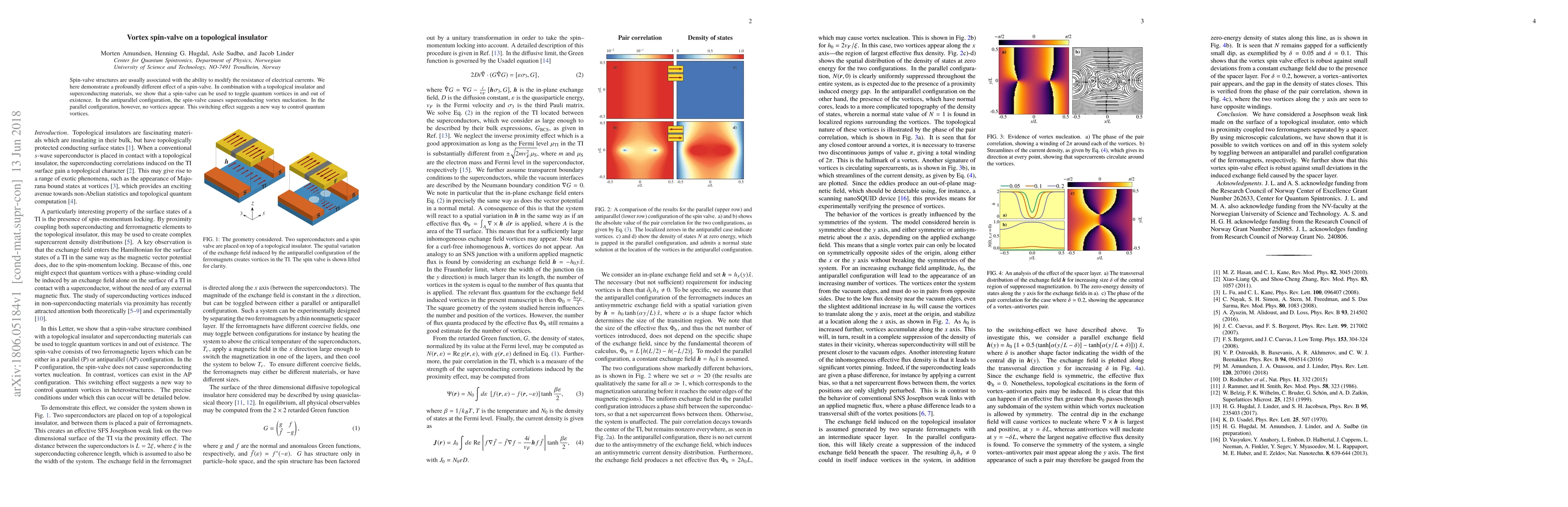 This research demonstrates a spin-valve's ability to toggle quantum vortices in and out of existence when combined with a topological insulator and superconducting materials. The spin-valve induces vortex nucleation in the antiparallel configuration but suppresses it in the parallel configuration, offering a novel method for controlling quantum vortices.