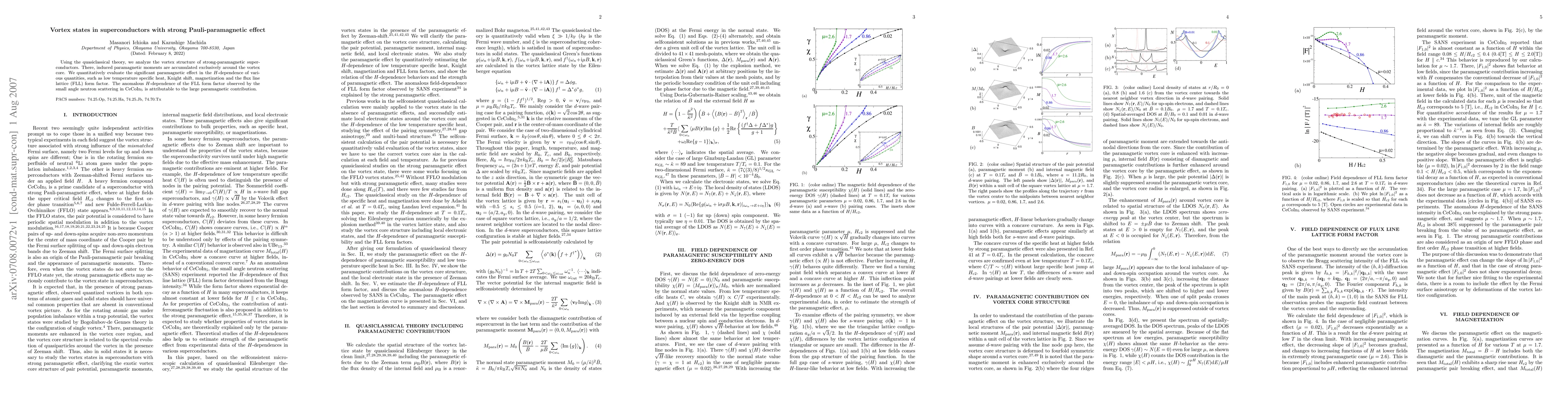 This paper uses quasiclassical theory to analyze vortex structures in strong-paramagnetic superconductors, finding that paramagnetic moments accumulate around the vortex core. The study quantitatively evaluates the significant paramagnetic effect on various quantities, attributing the anomalous H-dependence of the flux line lattice form factor to large paramagnetic contributions.