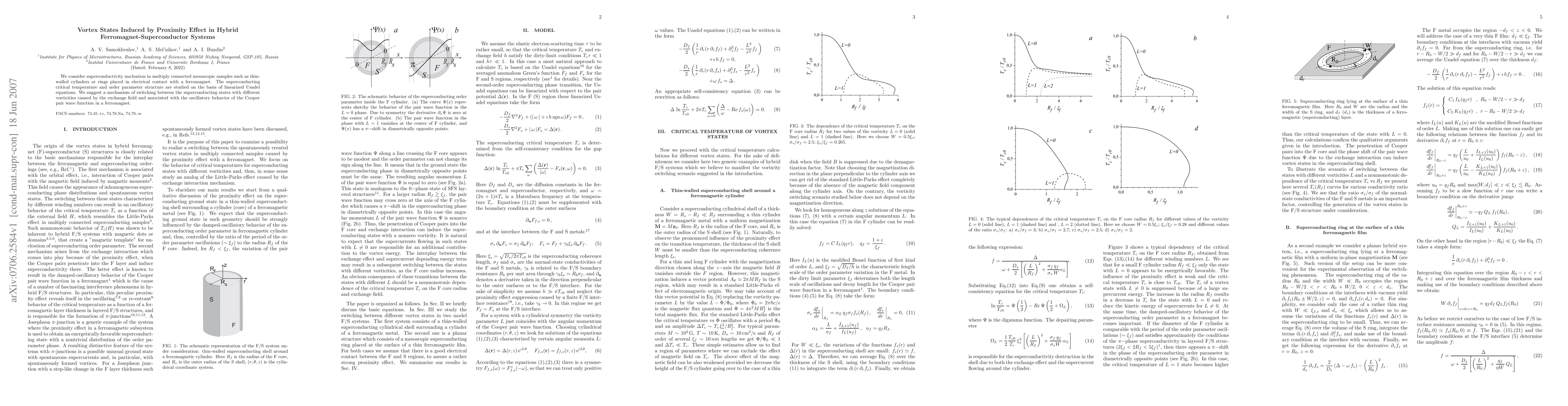 We consider superconductivity nucleation in multiply connected mesoscopic samples such as thin-walled cylinders or rings placed in electrical contact with a ferromagnet. The superconducting critical temperature and order parameter structure are studied on the basis of linearized Usadel equations. We suggest a mechanism of switching between the superconducting states with different vorticities caused by the exchange field and associated with the oscillatory behavior of the Cooper pair wave function in a ferromagnet.