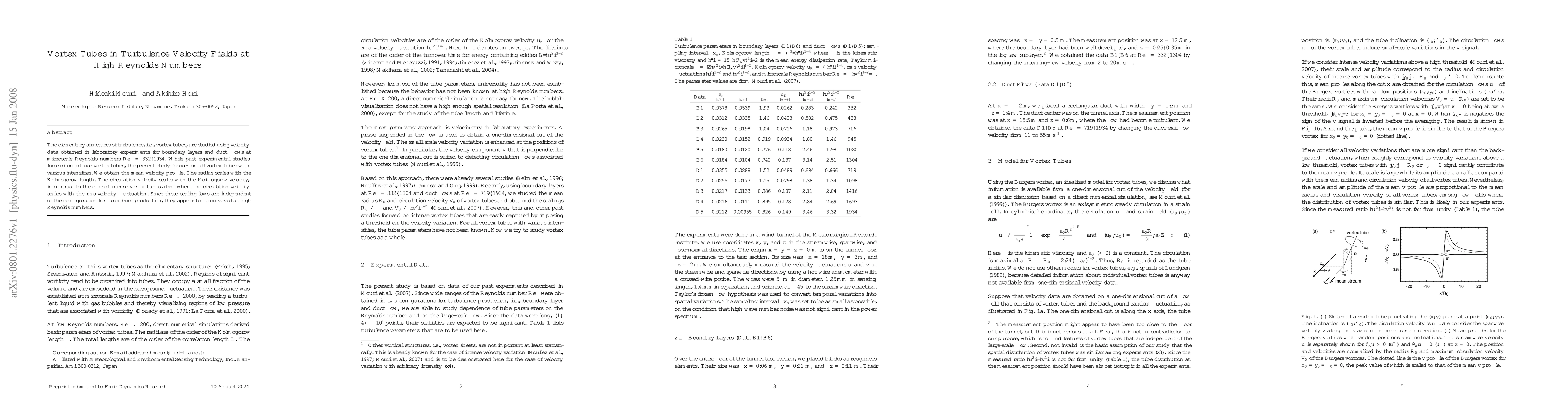This study investigates vortex tubes in turbulent velocity fields at high Reynolds numbers, analyzing both intense and weak vortex tubes in boundary layers and duct flows. The findings reveal universal scaling laws for vortex tube radius and circulation velocity, independent of turbulence production configuration.