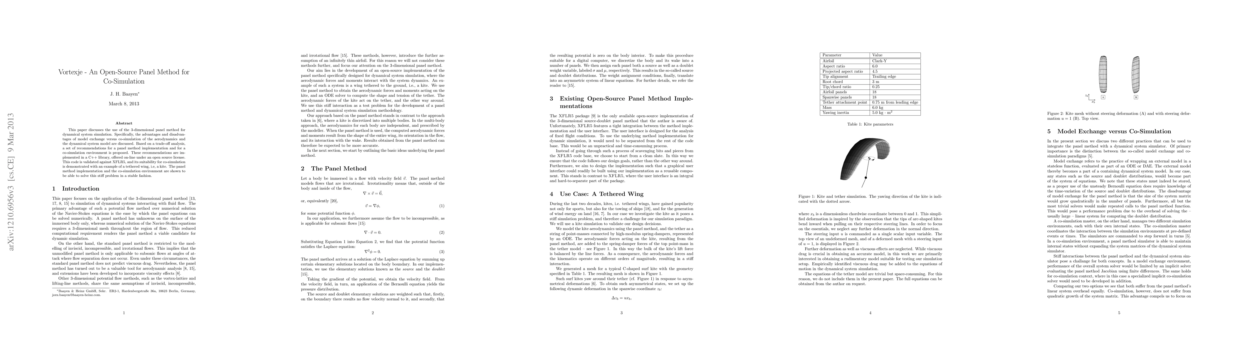 This paper discusses the use of the 3-dimensional panel method for dynamical system simulation. Specifically, the advantages and disadvantages of model exchange versus co-simulation of the aerodynamics and the dynamical system model are discussed. Based on a trade-off analysis, a set of recommendations for a panel method implementation and for a co-simulation environment is proposed. These recommendations are implemented in a C++ library, offered on-line under an open source license. This code is validated against XFLR5, and its suitability for co-simulation is demonstrated with an example of a tethered wing, i.e, a kite. The panel method implementation and the co-simulation environment are shown to be able to solve this stiff problem in a stable fashion.