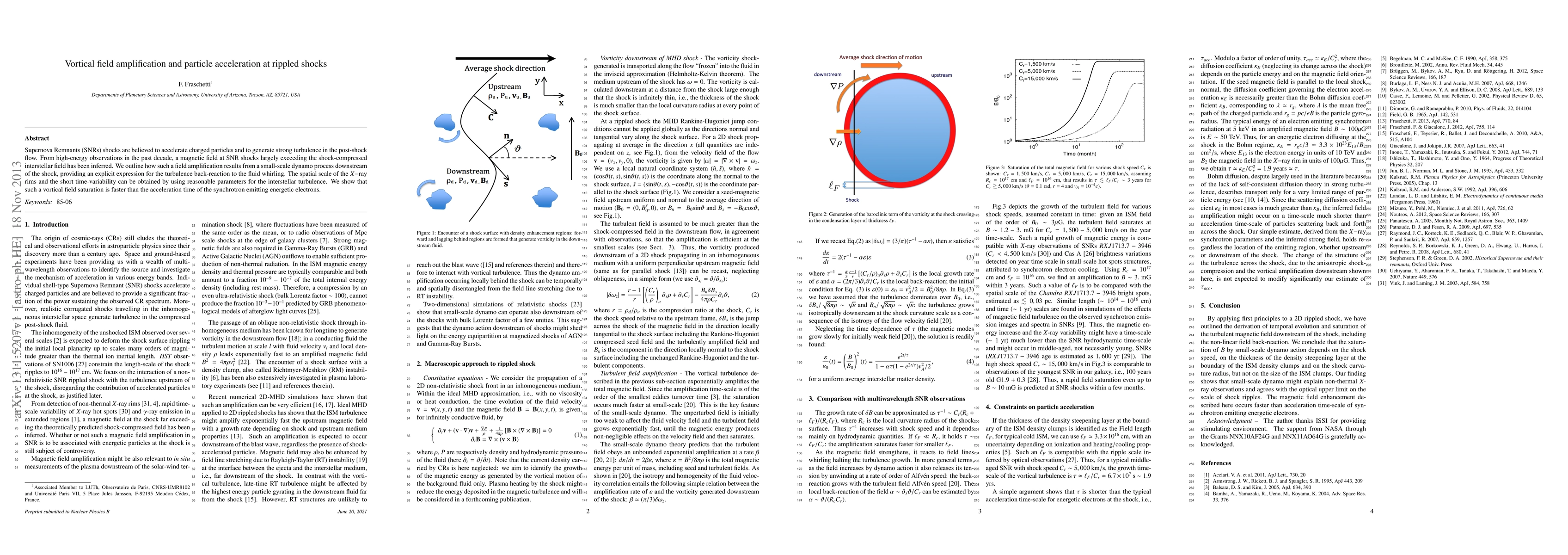 This paper investigates the amplification of magnetic fields at supernova remnant shocks through a small-scale dynamo process, explaining how turbulence downstream of the shock generates strong magnetic fields. It demonstrates that this vortical field saturation occurs faster than the acceleration time of energetic electrons, contributing to particle acceleration and the observed $X-$ray rims.
