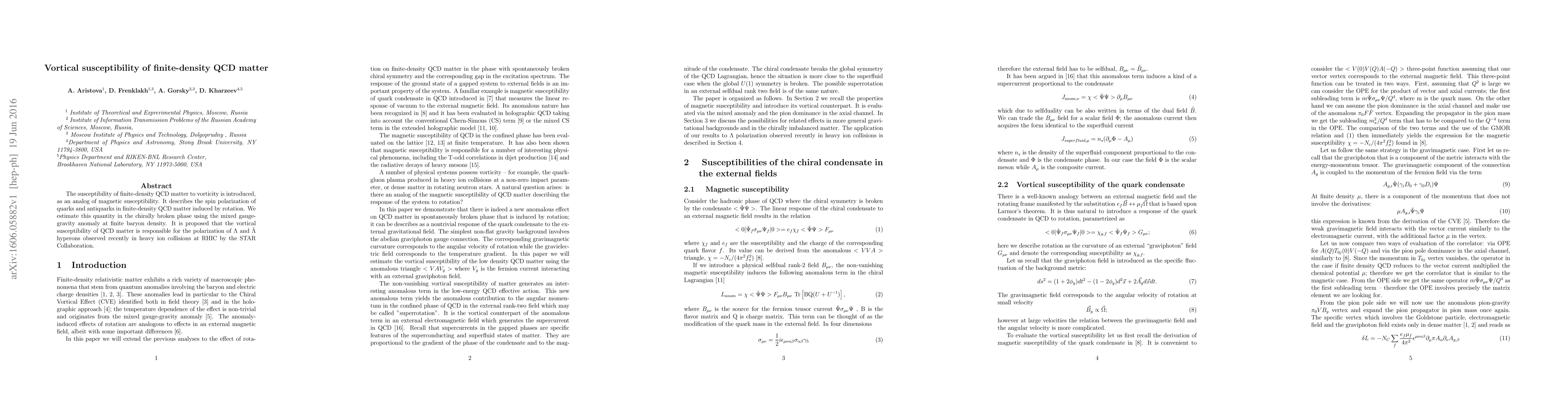 This paper investigates the vortical susceptibility of finite-density QCD matter, analogous to magnetic susceptibility, which quantifies the spin polarization of quarks and antiquarks due to rotation. The study estimates this susceptibility in the chirally broken phase using the mixed gauge-gravity anomaly and suggests it explains the observed polarization of $\Lambda$ and ${\bar \Lambda}$ hyperons in heavy ion collisions.