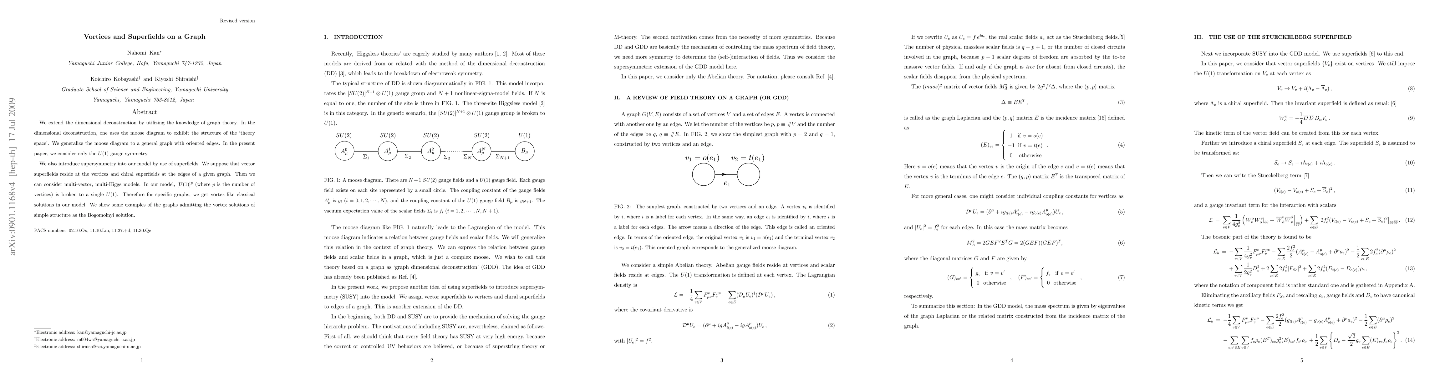 Researchers extend dimensional deconstruction to graph theory, introducing superfields and vortex solutions in a U(1) gauge symmetry model, enabling the study of multi-vector and multi-Higgs models.