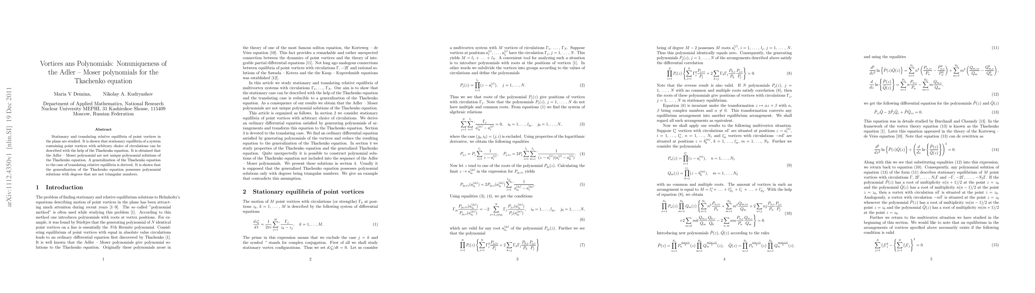 Stationary and translating relative equilibria of point vortices in the plane are studied. It is shown that stationary equilibria of a system containing point vortices with arbitrary choice of circulations can be described with the help of the Tkachenko equation. It is obtained that the Adler - Moser polynomial are not unique polynomial solutions of the Tkachenko equation. A generalization of the Tkachenko equation to the case of translating relative equilibria is derived. It is shown that the generalization of the Tkachenko equation possesses polynomial solutions with degrees that are not triangular numbers.