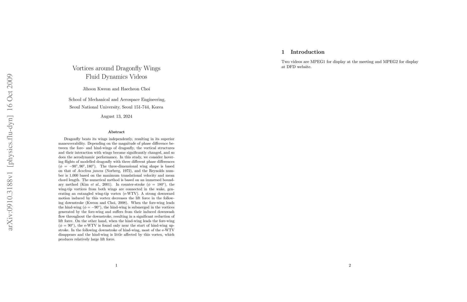 This study explores how different phase differences between a dragonfly's wings affect its flight performance, revealing that varying degrees of fore- and hind-wing coordination can either enhance or reduce lift force.