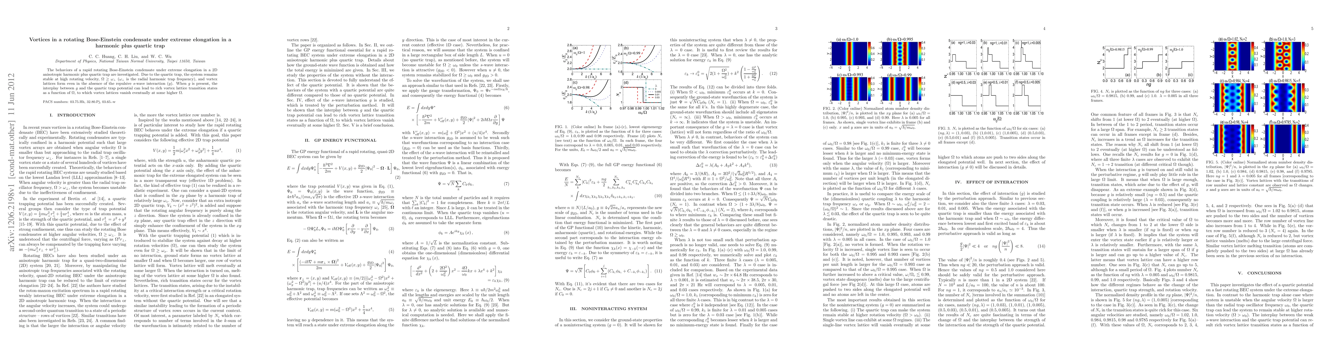 This study investigates the dynamics of rapidly rotating Bose-Einstein condensates under extreme elongation in a combined harmonic and quartic trap, revealing stable vortex lattices at high rotation speeds due to the quartic trap, even without repulsive interactions. The presence of s-wave interaction modifies vortex lattice transitions, leading to their eventual disappearance at higher rotation velocities.