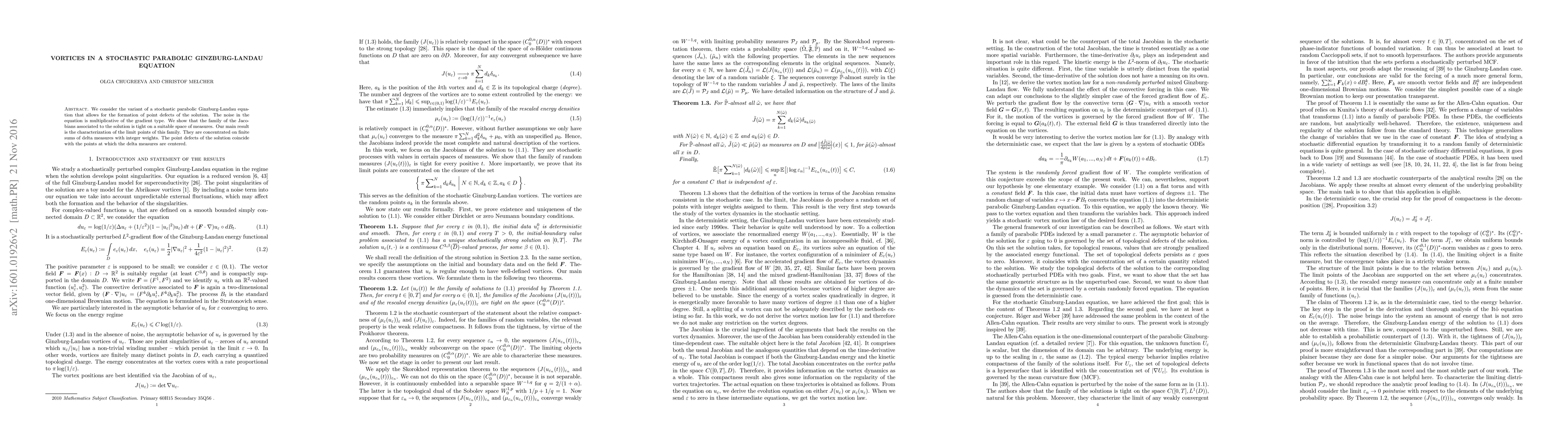 We consider the variant of a stochastic parabolic Ginzburg-Landau equation that allows for the formation of point defects of the solution. The noise in the equation is multiplicative of the gradient type. We show that the family of the Jacobians associated to the solution is tight on a suitable space of measures. Our main result is the characterization of the limit points of this family. They are concentrated on finite sums of delta measures with integer weights. The singular set of the solution coincides with the points at which the delta measures are centered.