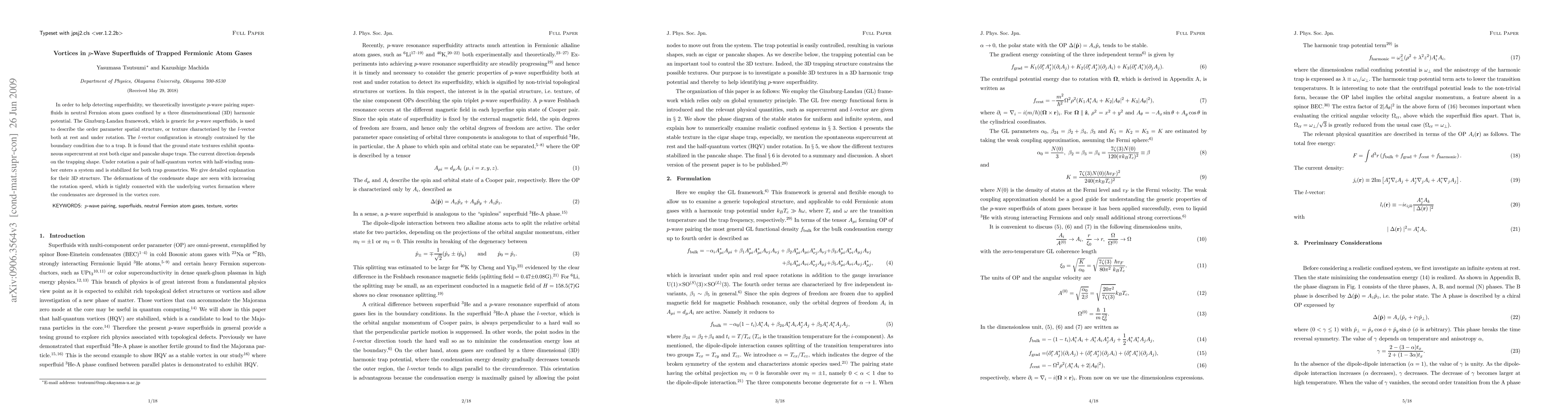 In order to help detecting superfluidity, we theoretically investigate p-wave pairing superfluids in neutral Fermion atom gases confined by a three dimensimentional (3D) harmonic potential. The Ginzburg-Landau framework, which is generic for p-wave superfluids, is used to describe the order parameter spatial structure, or texture characterized by the l-vector both at rest and under rotation. The l-vector configuration is strongly contrained by the boundary condition due to a trap. It is found that the ground state textures exhibit spontaneous supercurrent at rest both cigar and pancake shape traps. The current direction depends on the trapping shape. Under rotation a pair of half-quantum vortex with half-winding number enters a system and is stabilized for both trap geometries. We give detailed explanation for their 3D structure. The deformations of the condensate shape are seen with increasing the rotation speed, which is tightly connected with the underlying vortex formation where the condensates are depressed in the vortex core.