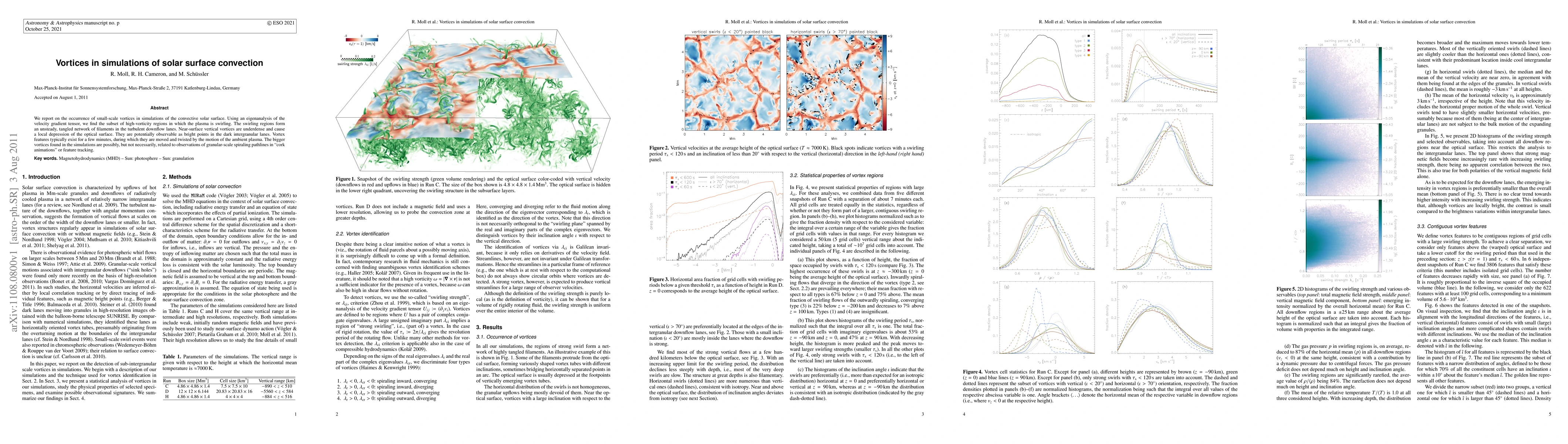 We report on the occurrence of small-scale vortices in simulations of the convective solar surface. Using an eigenanalysis of the velocity gradient tensor, we find the subset of high vorticity regions in which the plasma is swirling. The swirling regions form an unsteady, tangled network of filaments in the turbulent downflow lanes. Near-surface vertical vortices are underdense and cause a local depression of the optical surface. They are potentially observable as bright points in the dark intergranular lanes. Vortex features typically exist for a few minutes, during which they are moved and twisted by the motion of the ambient plasma. The bigger vortices found in the simulations are possibly, but not necessarily, related to observations of granular-scale spiraling pathlines in "cork animations" or feature tracking.