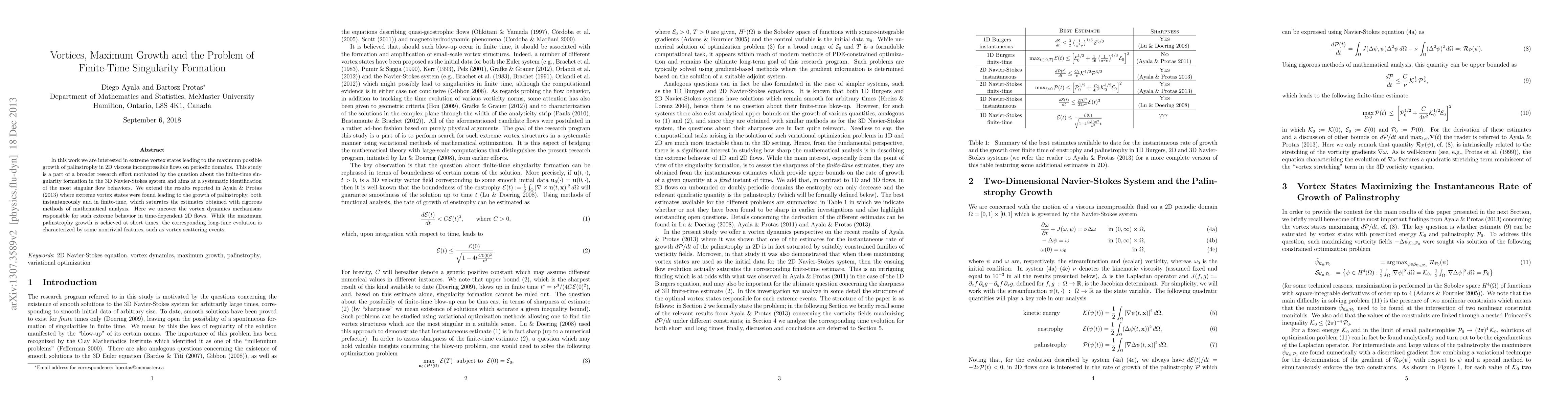 This paper investigates extreme vortex states in 2D viscous incompressible flows that maximize palinstrophy growth, extending previous findings on vortex dynamics. It aims to identify the most singular flow behaviors and understand mechanisms leading to finite-time singularity formation in 3D Navier-Stokes systems.