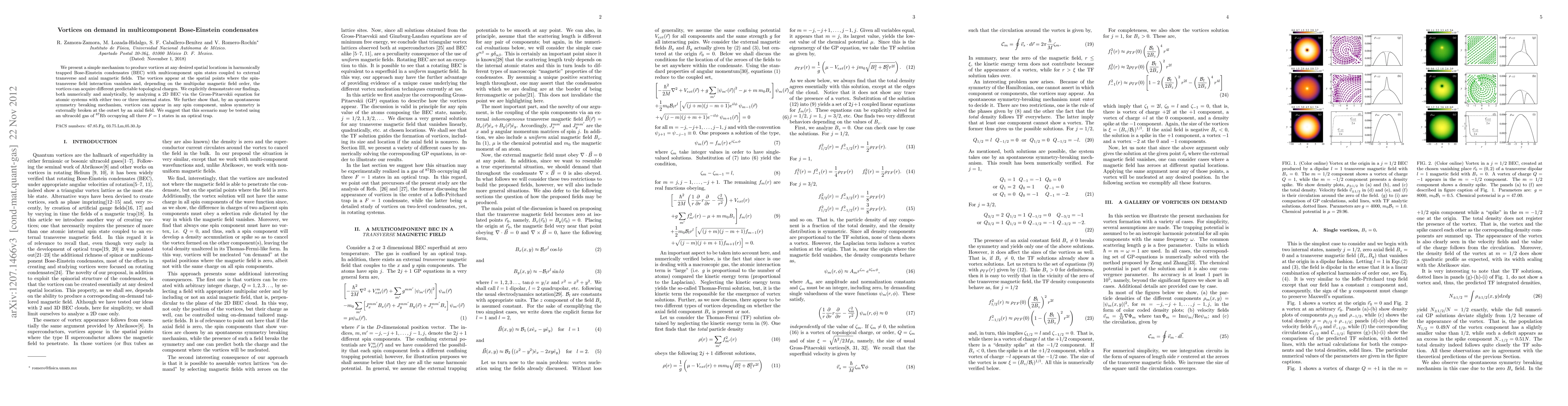 This work presents a simple mechanism for generating vortices on demand in multicomponent BECs, which could advance the understanding and control of quantum systems, potentially leading to applications in quantum computing and precision measurements.