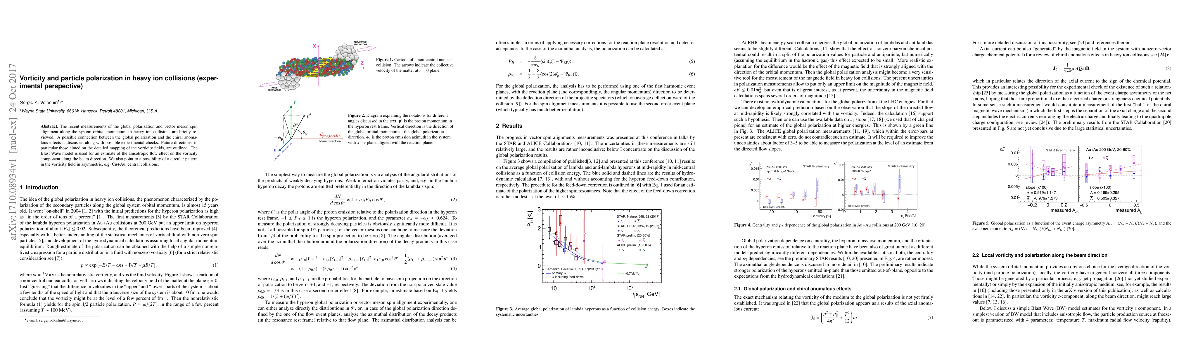 This paper reviews recent experimental measurements of polarization and vector meson spin alignment in heavy ion collisions, discussing a potential link to chiral anomalous effects and future studies focused on mapping vorticity fields. The Blast Wave model is used to estimate anisotropic flow effects on vorticity along the beam direction, with a note on possible circular vorticity patterns in asymmetric collisions.