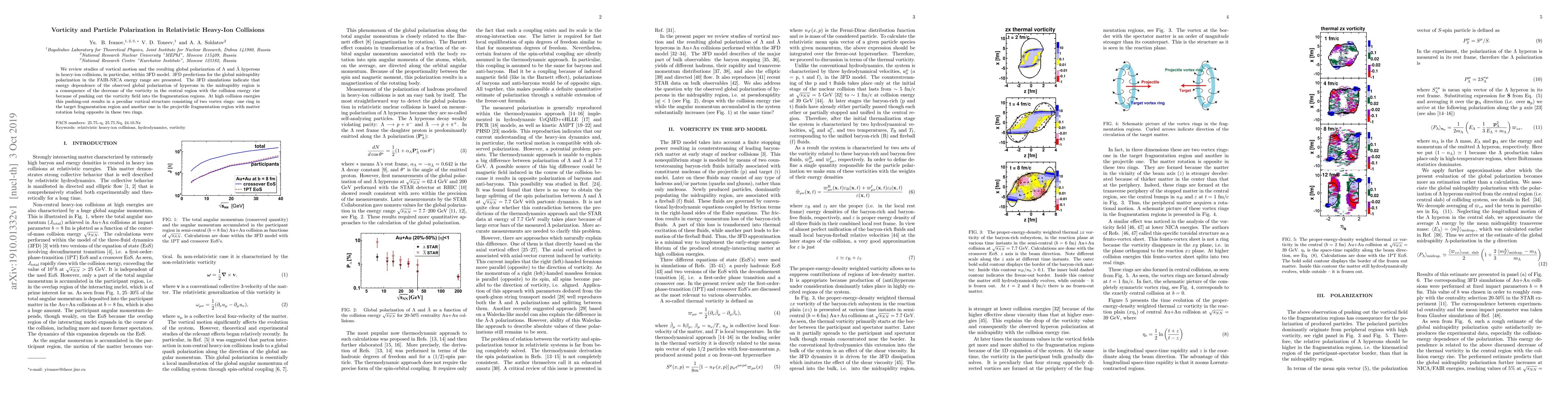 This paper reviews studies on vortical motion and hyperon polarization in relativistic heavy-ion collisions using the 3FD model, showing that the energy dependence of hyperon polarization is due to the reduction of vorticity in the central region with increasing collision energy, leading to distinct vortical structures at high energies.