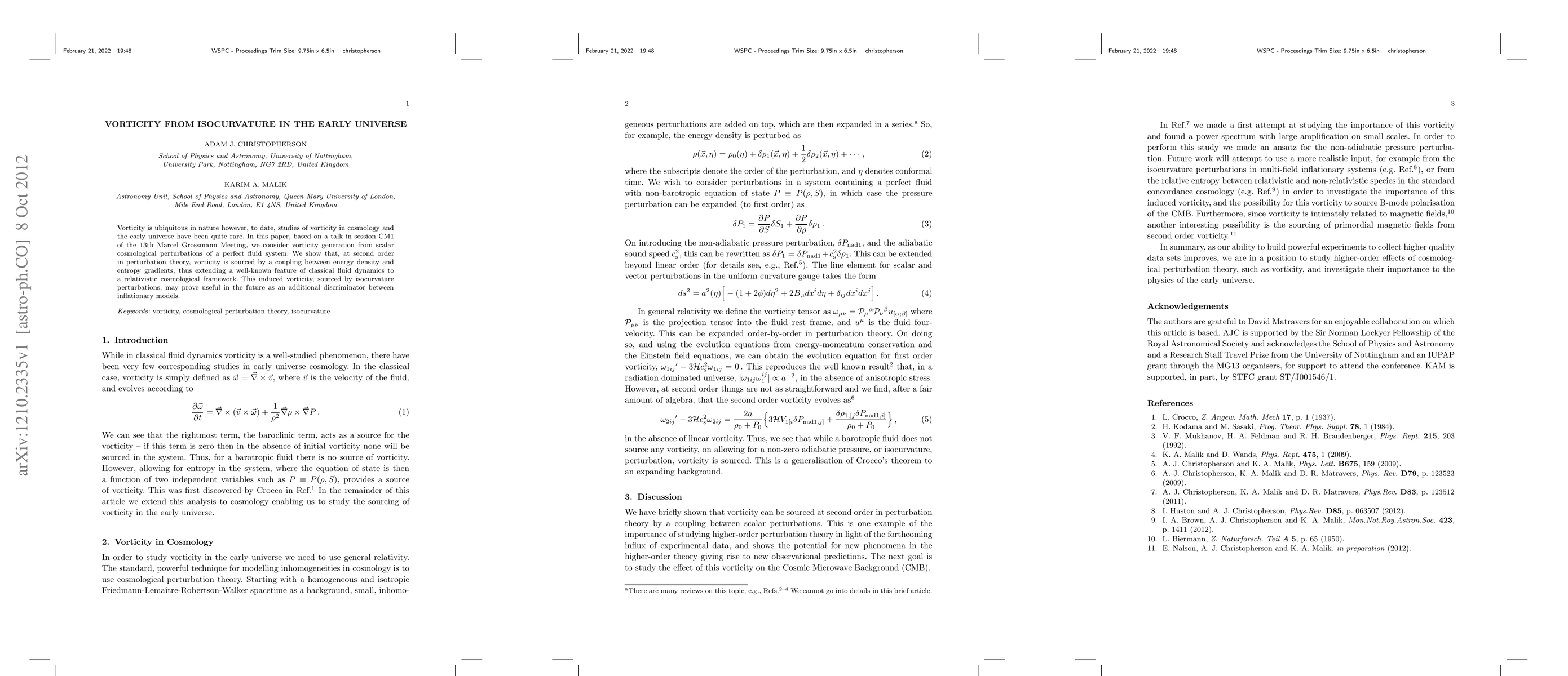 This paper explores the generation of vorticity in the early universe from scalar cosmological perturbations, demonstrating that vorticity arises from the coupling between energy density and entropy gradients. This induced vorticity, originating from isocurvature perturbations, could serve as a new tool for distinguishing between different inflationary models.