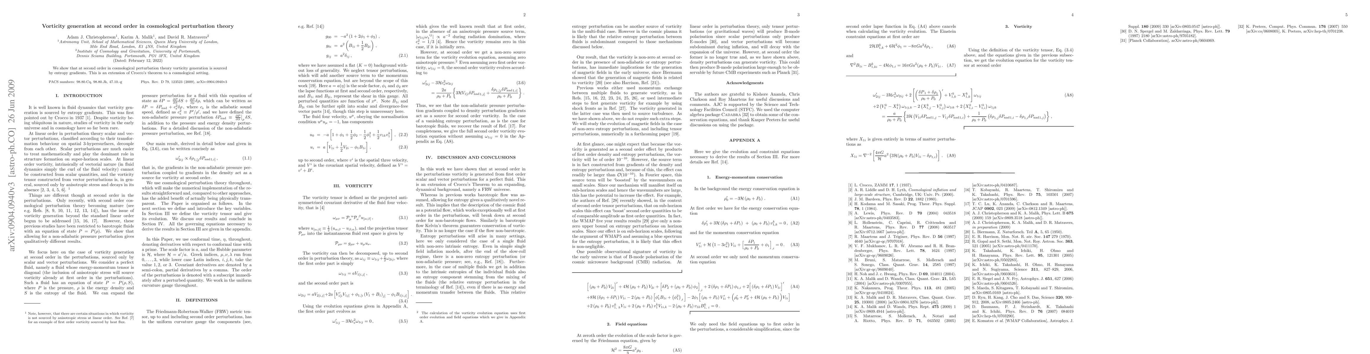 We show that at second order in cosmological perturbation theory vorticity generation is sourced by entropy gradients. This is an extension of Crocco's theorem to a cosmological setting.